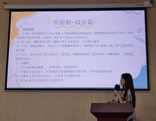 杨婷妮学姐从国际商务专硕备考的角度,具体介绍了如何确定院校目标,备考的前期准备以及备考时间规划与方法,为同学们带来了独特的经验和技巧分享,让同学们对考研的流程与方法有了一个系统的了解。李枫学长则从自身产业经济学学硕备考的角度分享了如何择校、考研重点,从数学、英语、政治、专业课四个板块深入分享了自己的备考经验。学长学姐以自身经历为引,鼓励大家坚持奋斗,祝愿大家都能成功上岸心仪院校。