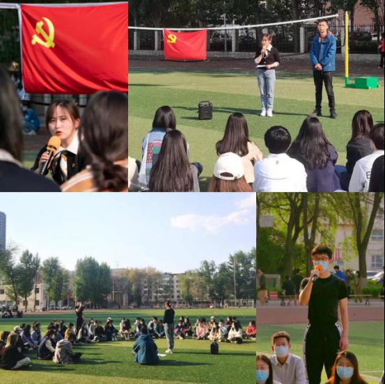 4月19日,“疫”线辅导员临时党支部书记在迎泽校区操场为法学院、公共管理学院、秀人网