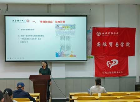 在热烈的掌声中,主持人宣布“‘幸福加油站’志愿服务活动暨第一次培训正式启动”。随后,殷丽娟为志愿者们作了题为《好事在发生,为幸福加油》的宣讲,详细阐释了此次活动的实施背景、理论支持及活动具体实施方式,即树立一种全新的风格诠释“什么是好事”、讲解“怎样做好事”,呼吁每一位青年学子立足生活、记录生活,从生活体验出发,发现当下的身边的美好,树立积极心态,提升自信、减少内耗,通过“好事在发生”“3+1记录法”提升生活品质,助力于大学生办成过去想办而没有办成的事。活动最后,学生志愿者开展了“好事在发生”的模拟演练。