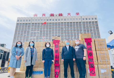 4月12日上午,山西财经大学秀人网 收到来自2020级一学生家长高福忠先生的爱心捐赠,在此疫情防控的关键时期,高先生为我校捐赠了包含3万只口罩、1800斤消毒液、100只护目镜、20把测温枪的防疫物资,用于支持学校与学院的防疫工作。高先生表示,疫情期间切实感受到学校对学生的关心关爱,希望能为学校与学院的疫情防控尽自己的一份绵薄之力。